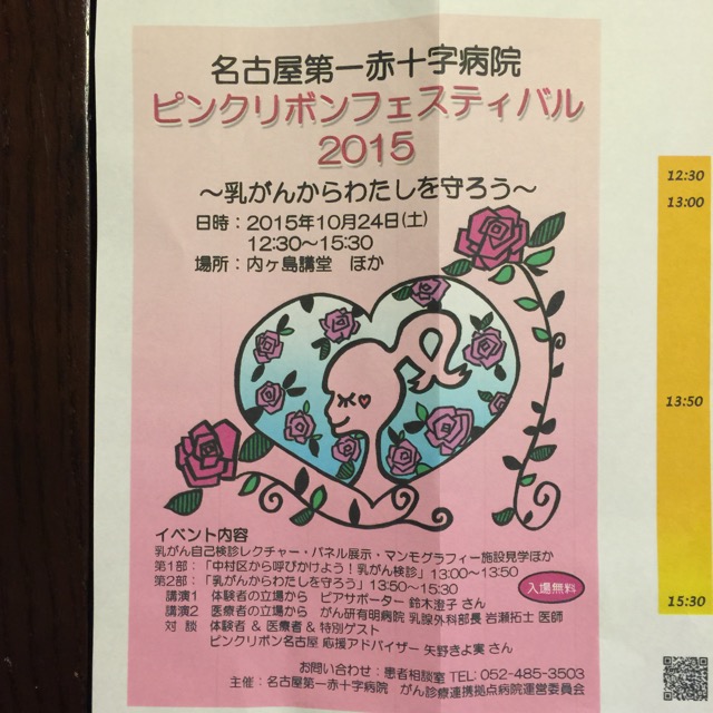 10月24日(土)に名古屋第一赤十字病院で行われる『ピンクリボンフェスティバル2015』